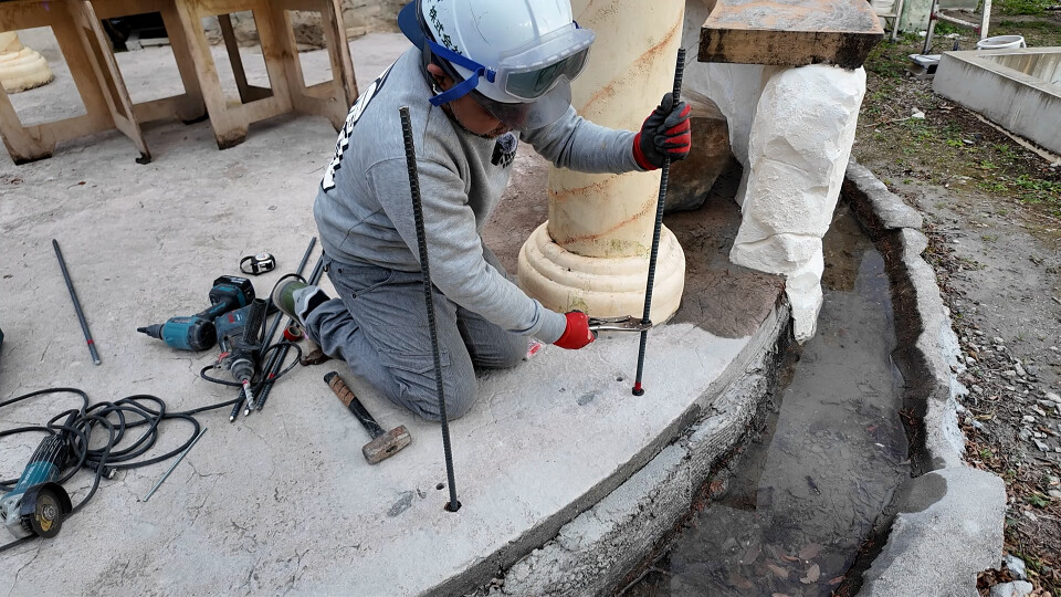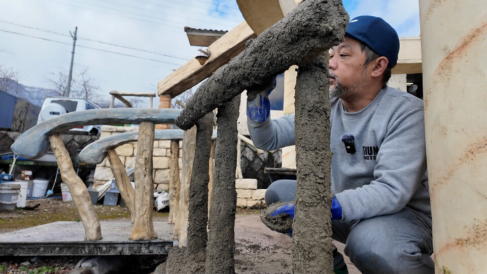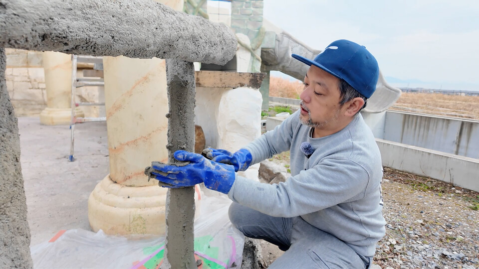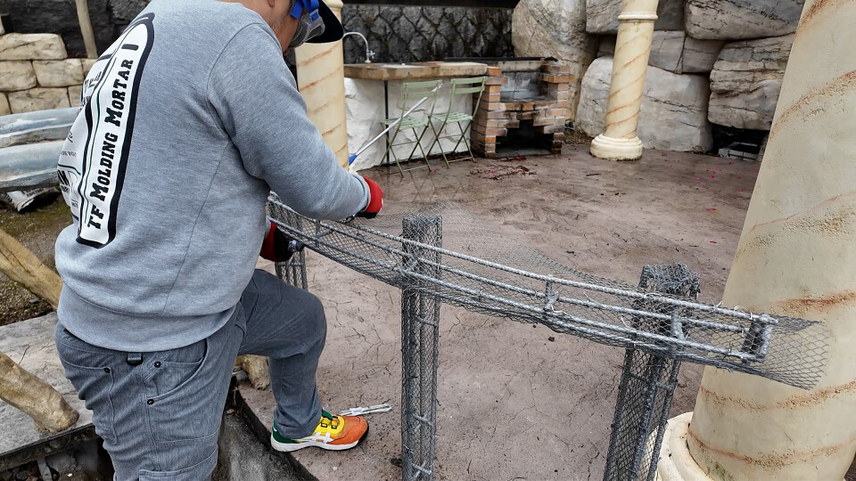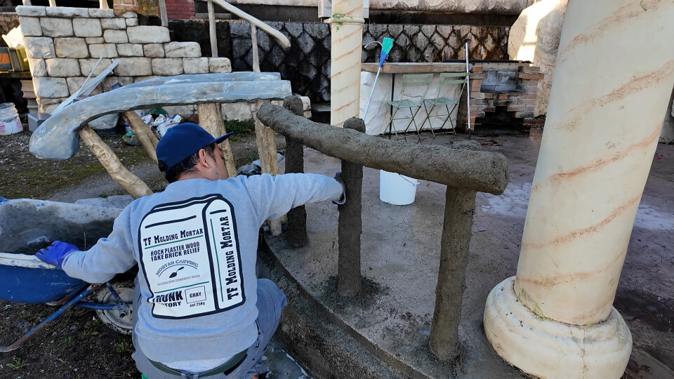 レッスンモルタル造形 ロックワーク 擬木の手すり